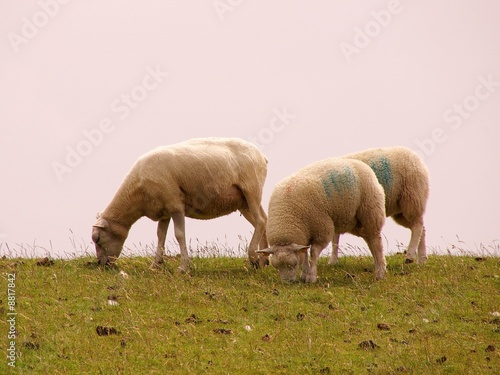 Sheep grazing at a dike