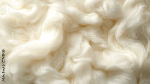 Sheep wool texture. White raw fur soft fluffy material. A sample of warm beige fabric background picture of a soft fur white carpet. Wool sheep fleece texture, Fake color beige fur fabric top view.