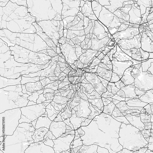 Sheffield Area Map with Labels and Neighborhoods - One color, minimalistic design