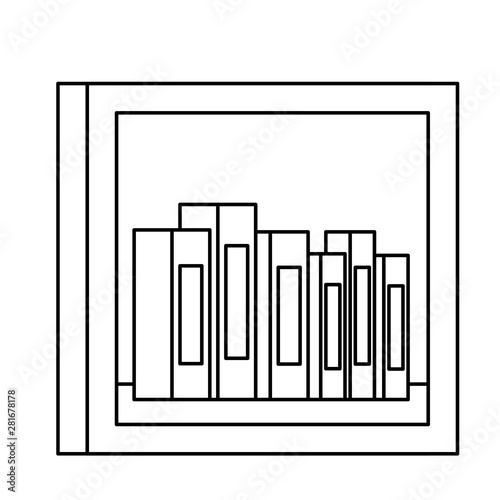 shelf wooden with pile text books library icons