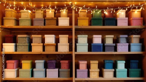 Shelves filled with colorful boxes