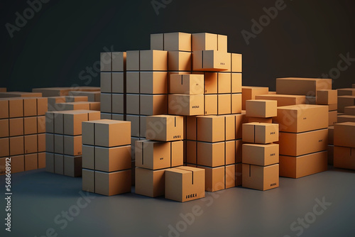 Shelves with goods boxes at industrial factory warehouse storage. Generative AI.