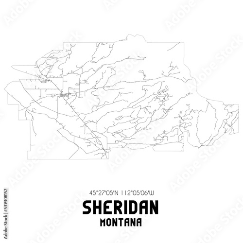 Sheridan Montana. US street map with black and white lines.
