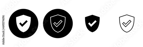 Shield check mark icon set. Protection approve sign. Safe icon vector