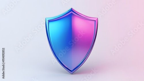 Shield depicting protection. shield 3d icon. Protection, defense and security concept symbol: blue and purple shield on isolated on white background