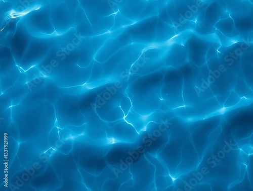 Shimmering Blue Water Surface with Light Reflections, Close Up