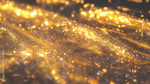 Shimmering gold light reflection on water droplets for luxurious abstract background