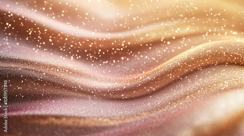 shimmering, golden abstract texture with soft, flowing waves and glittering particles, creating an ethereal, luxurious visual effect.