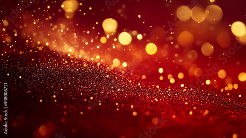 Shimmering golden and red bokeh with sparkling particles creating a festive atmosphere during a celebration