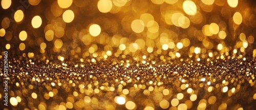 Shimmering golden glitter bokeh background with radiant light creating a festive and luxurious atmosphere perfect for celebration and elegance