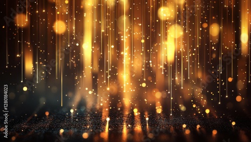 Shimmering Golden Particles with Glowing Lights Creating a Dreamy Atmosphere in an Elegant Background Suitable for Various Creative Projects