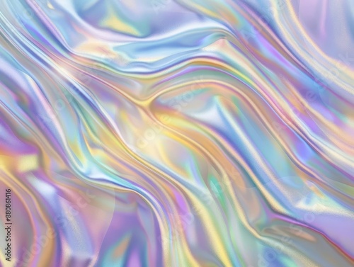 shimmering holographic background with undulating waves of pastel violet blue and yellow creating an iridescent abstract pattern