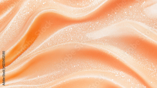 Shimmering Peach Satin: A captivating close-up of luxurious peach satin with subtle sparkle, showcasing its soft, flowing texture and gentle luminescence.