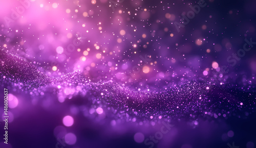 Shimmering purple particles create a dreamy, magical scene. The vibrant colors and bokeh effect evoke a sense of wonder and enchantment.