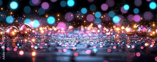 Shimmering Sphere Array with Bokeh Light Cascade Elegant Design Abstract Decoration Festive Ambiance Background