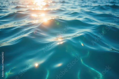 Shimmering sunlight dances on rippling blue water , abstract, azure, serenity