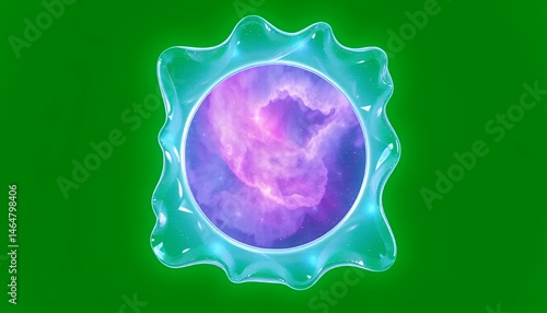 Shimmering Turquoise Frame Enclosing Nebula Isolated on Green Screen Background for Visual Effects