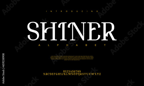 Shiner premium luxury elegant alphabet letters and numbers. Elegant wedding typography classic serif font decorative vintage retro. Creative vector illustration