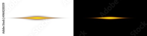 Shining horizontal light with yellow gold color and radiant glow. Bright beam, sun flare, and shimmer effect for luxury, magic, and celebration designs. Png illustration on transparent background.