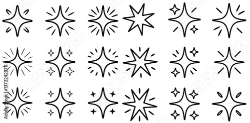 Shining Symbols: A collection of stylized starburst symbols in a variety of shapes and sizes, ready for use in designs. Conveying brightness, magic, and positive energy.