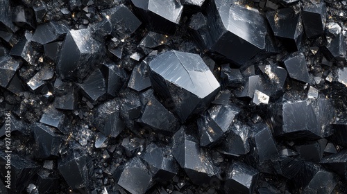 Shiny black crystal cluster with jagged edges and sparkling highlights
