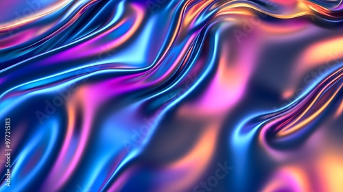 Shiny Colorful Metallic Background with Abstract Chrome Waves. Abstract colorful metallic background with shiny waves. Colorful chrome waves background.
