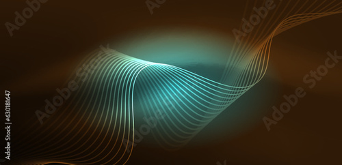 Shiny glowing neon wave. Neon light or laser show, electric impulse, power lines, techno quantum energy impulse, magic glowing dynamic lines