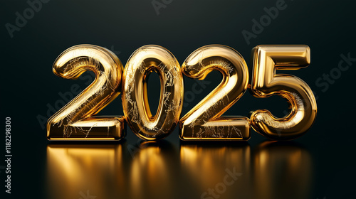 Shiny golden numbers 2025 aligned with a futuristic sans-serif font for 'Happy New Year,' overlaid on a gradient background