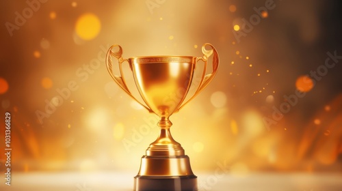 Shiny golden trophy on display with blurred background, symbolizing achievement.