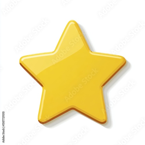 Shiny Golden Yellow Cartoon Star on White Background