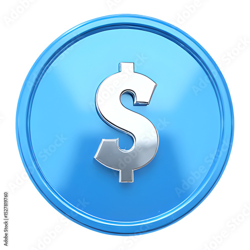 Shiny metallic dollar symbol displayed on a blue coin concept of finance and wealth