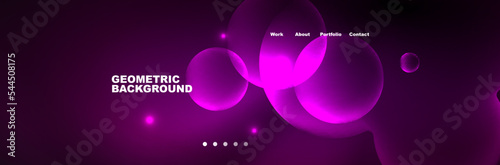 Shiny neon circles and bubbles, dark abstract background with blurred magic neon light, wallpaper design