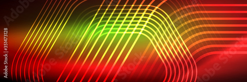 Shiny neon lines, stripes and waves, technology abstract background. Trendy abstract layout template for business or technology presentation, internet poster or web brochure cover, wallpaper