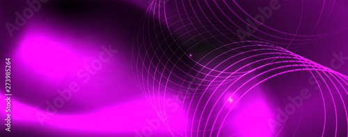 Shiny neon techno template. Neon lines background, 80s style laser rays