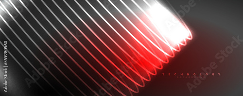 Shiny neon waves, dynamic electric motion, energy or speed concept. Vector illustration for wallpaper, banner, background, leaflet, catalog, cover, flyer