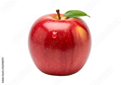 Shiny Red Apple with Leaf and Water Droplet.