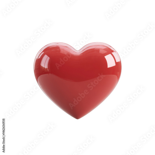 Shiny red heart shape with glossy finish, reflecting light on its smooth surface, symbolizes love and affection. heart is centered against plain background, emphasizing its vibrant color