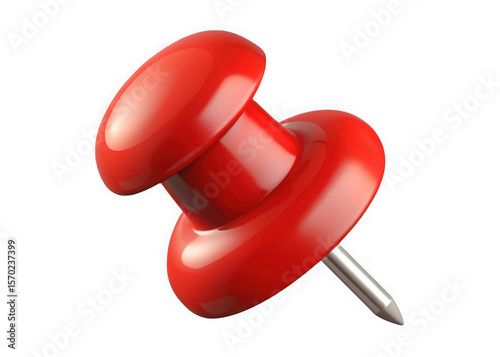 Shiny red thumbtack with a metal pin isolated on transparent background
