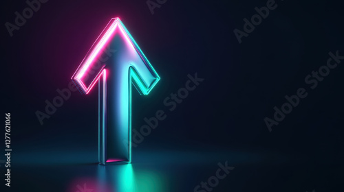 shiny silver metal arrow icon with neon blue and pink accents, symbolizing upward movement and progress. sleek design stands out against dark background, creating modern aesthetic