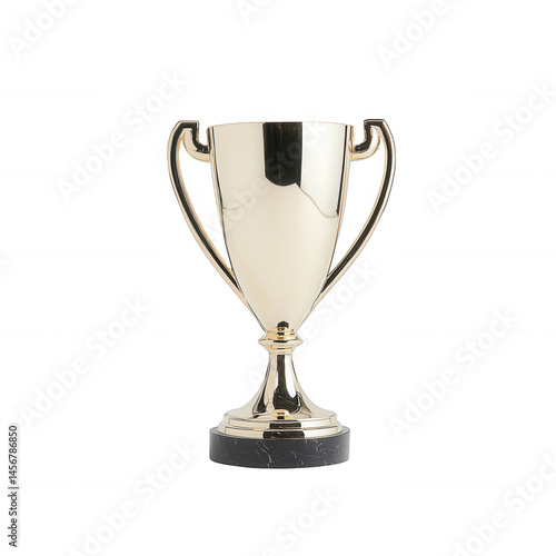 Shiny silver trophy with handles, symbolizing victory and achievement. Ideal for awards and competitions. White isolated background for easy integration into various designs.