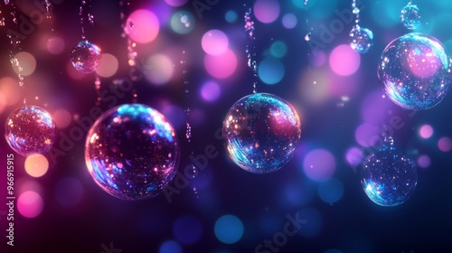 Shiny, Suspended, Spherical Objects with Blurred Lights