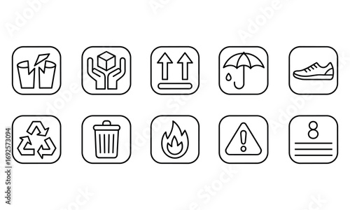 Shipping And Handling Icons Set With Fragile Recycle And Warning Symbols Keywords: shipping, handling, logistics, cargo, delivery