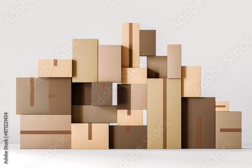 Shipping Boxes in an Empty White Room