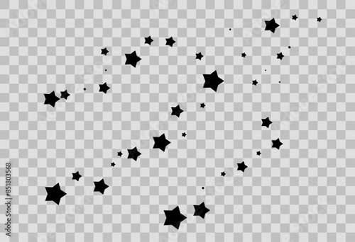 Shooting Star Black. Shooting star with an elegant star trail on a white background. Festive star sprinkles, powder. Vector png.