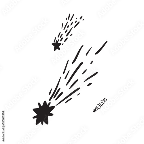 Shooting star, meteorite is space by hand, for posters, stickers and any design. Isolated on a white background. Vector illustration with doodles.