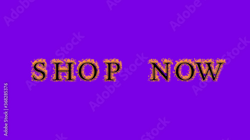 shop now fire text effect violet background. animated text effect with high visual impact. letter and text effect. Alpha Matte.