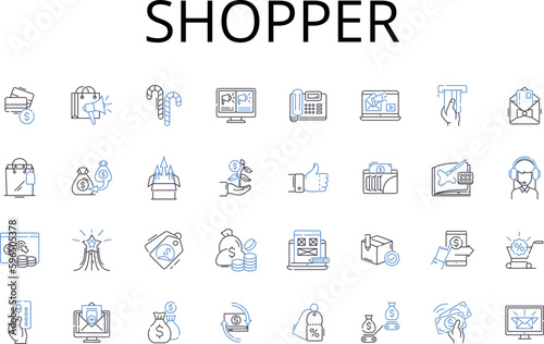 Shopper line icons collection. Consumer, Buyer, Customer, Patron, Client, User, Purchaser vector and linear illustration. Shopaholic,Window-shopper,Bargain hunter outline signs set Generative AI