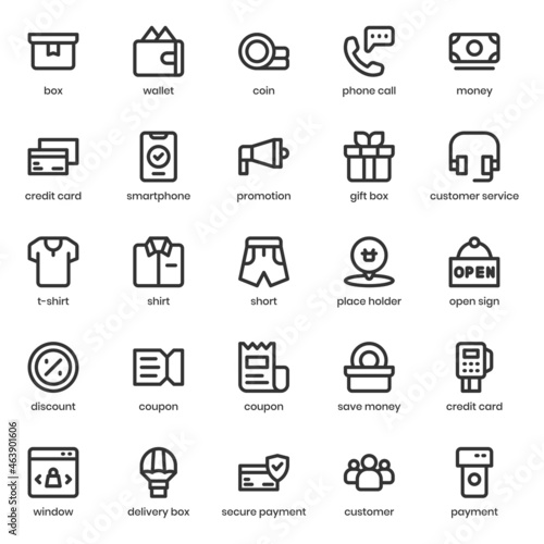 Shopping and Ecommerce icon pack for your website design, logo, app, UI. Shopping and Ecommerce icon outline design. Vector graphics illustration and editable stroke.