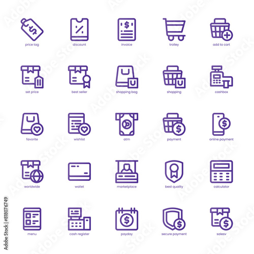 Shopping and Store icon pack for your website, mobile, presentation, and logo design. Shopping and Store icon basic line gradient design. Vector graphics illustration and editable stroke.