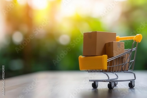 Shopping cart with boxes, symbolizing online shopping and delivery